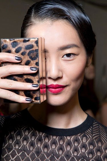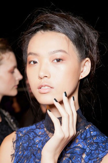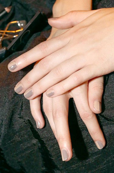 2. Ennek ellenpólusa az egészen sötét szürke, mélylila színek, amiket a divatházak egészen rövidre vágott körmökön képzelnek el leginkább. Ami fontos, ilyen erős színek esetén a körömlakk színe harmonizáljon ruhánkkal, mi több, egészítse ki azt.