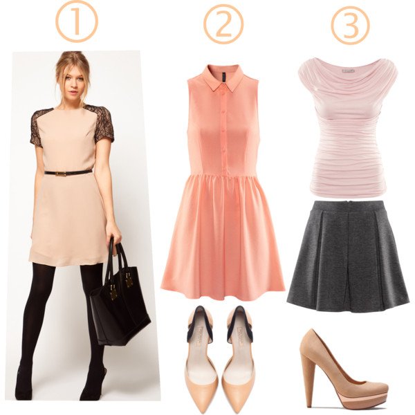 1) Csipkés rószaszín ruha (ASOS) – 75,31 euro 2) Rózsaszín ruha (H&M) – 6 990 Ft; Magassarkú cipő (Zara) – 17 995 Ft 3) Rózsaszín lágy esésű top (H&M) – 3 990 Ft; Szürke A vonalú szoknya (H&M) – 3 990 Ft; Platformos cipő (Bershka) – 9 995 Ft
