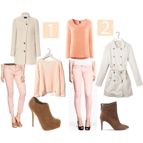 1) Len félhosszú kabát (Zara) – 17 995 Ft; Kötött pulóver (Pull&Bear) – 4 595 Ft; Pöttyös rózsaszín farmer (GAP) – $69,95; Platform velúr bokacsizma (ASOS) – 38,96 euro 2) Világos ballonkabát (Pull&Bear) – 9 995 Ft; Rózsaszín kötött pulóver (H&M) – 5 990 Ft; Rózsaszín skinny farmer (H&M) – 8 990 Ft ; Barna bőr-velúr bokacsizma (Bershka) – 22 595 Ft